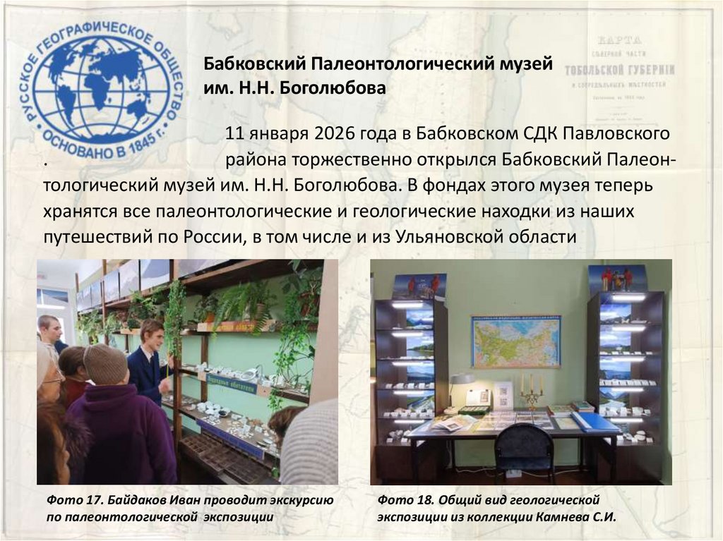 Палеонтологического музея им. Н.Н. Боголюбова, расположенного в Бабковском