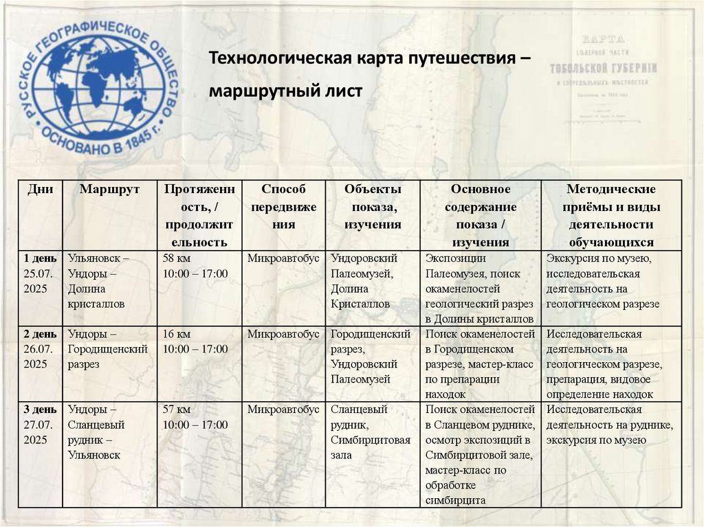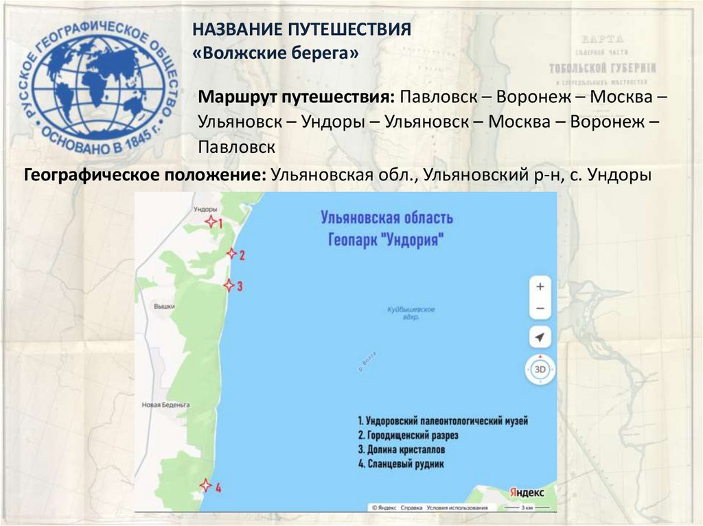 Составление плана экскурсии по территории Геопарка «Ундория» с