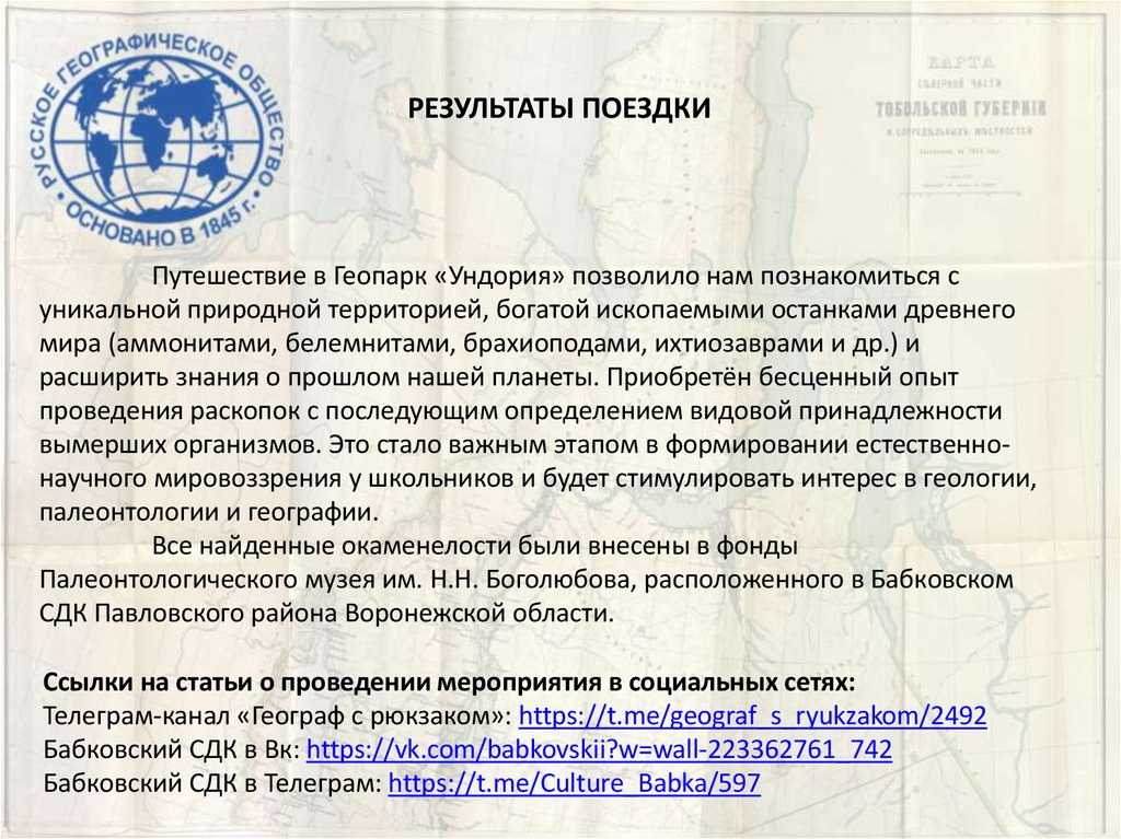 РЕЗУЛЬТАТЫ ПОЕЗДКИПутешествие в Геопарк «Ундория» позволило нам познакомиться с