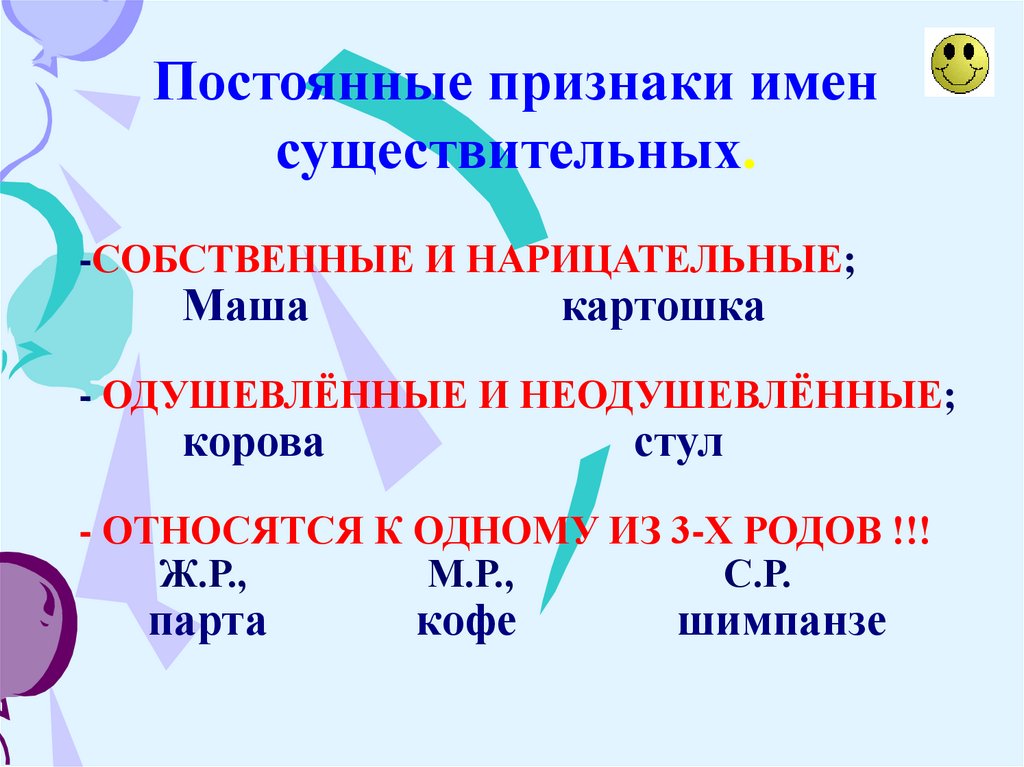 Постоянные признаки именсуществительных.