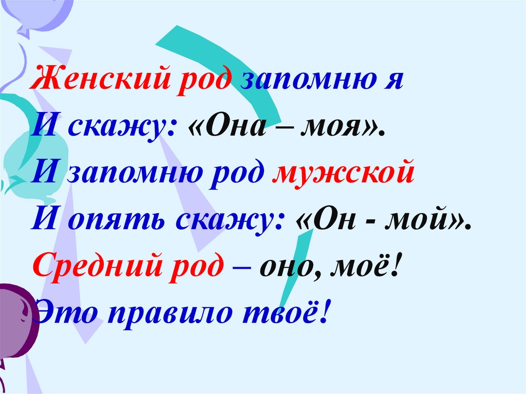 Женский род запомню яИ скажу: «Она – моя».