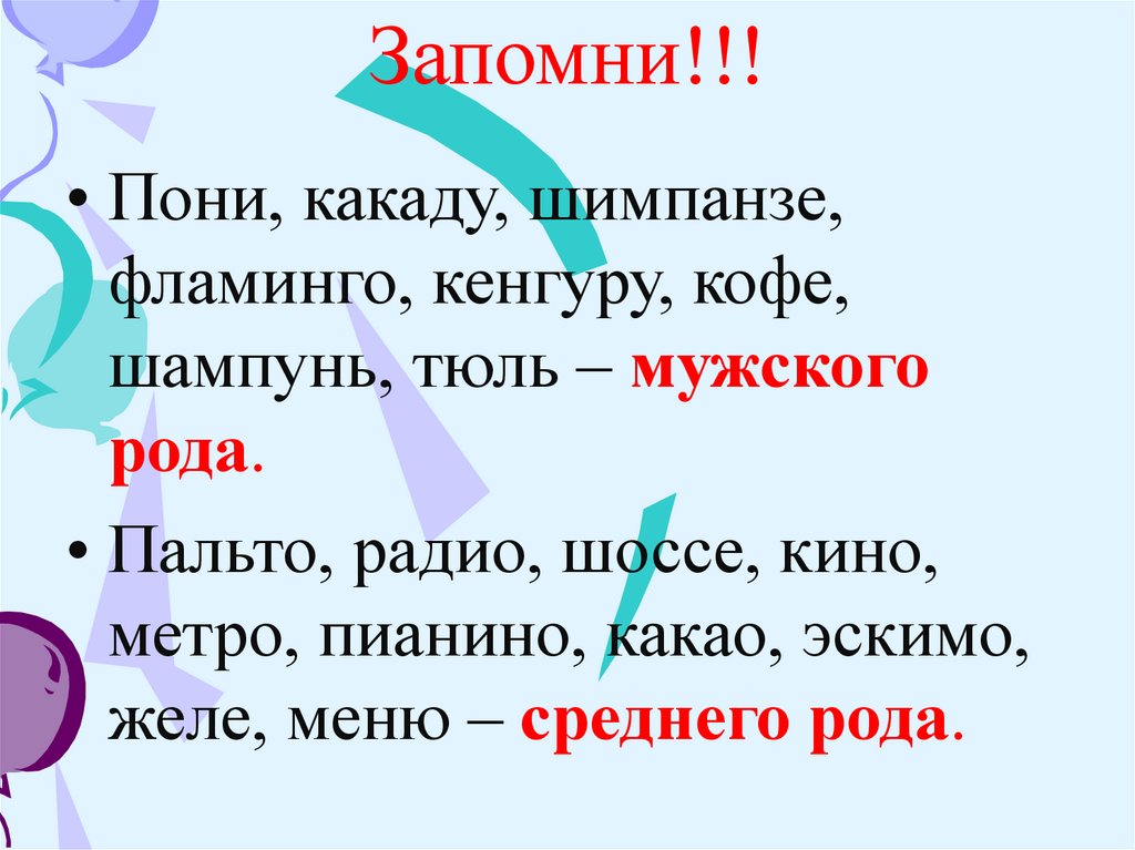 Правило определения родаимени существительного