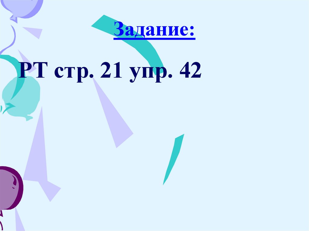 Задание:РТ стр. 21 упр. 42