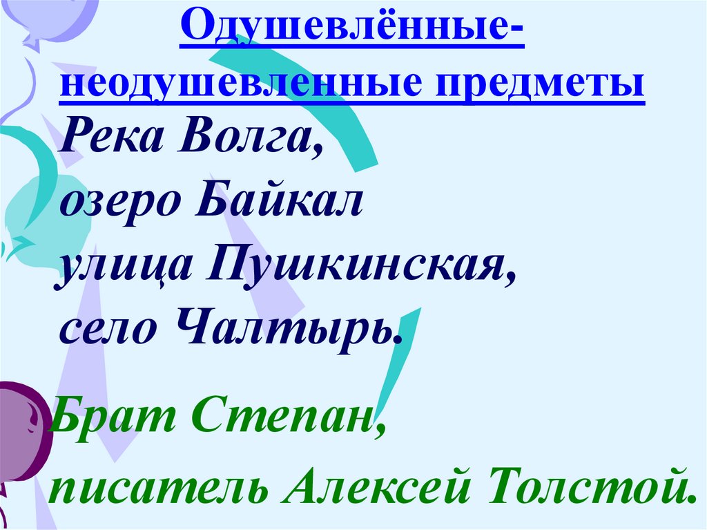 Одушевлённыенеодушевленные предметыРека Волга,