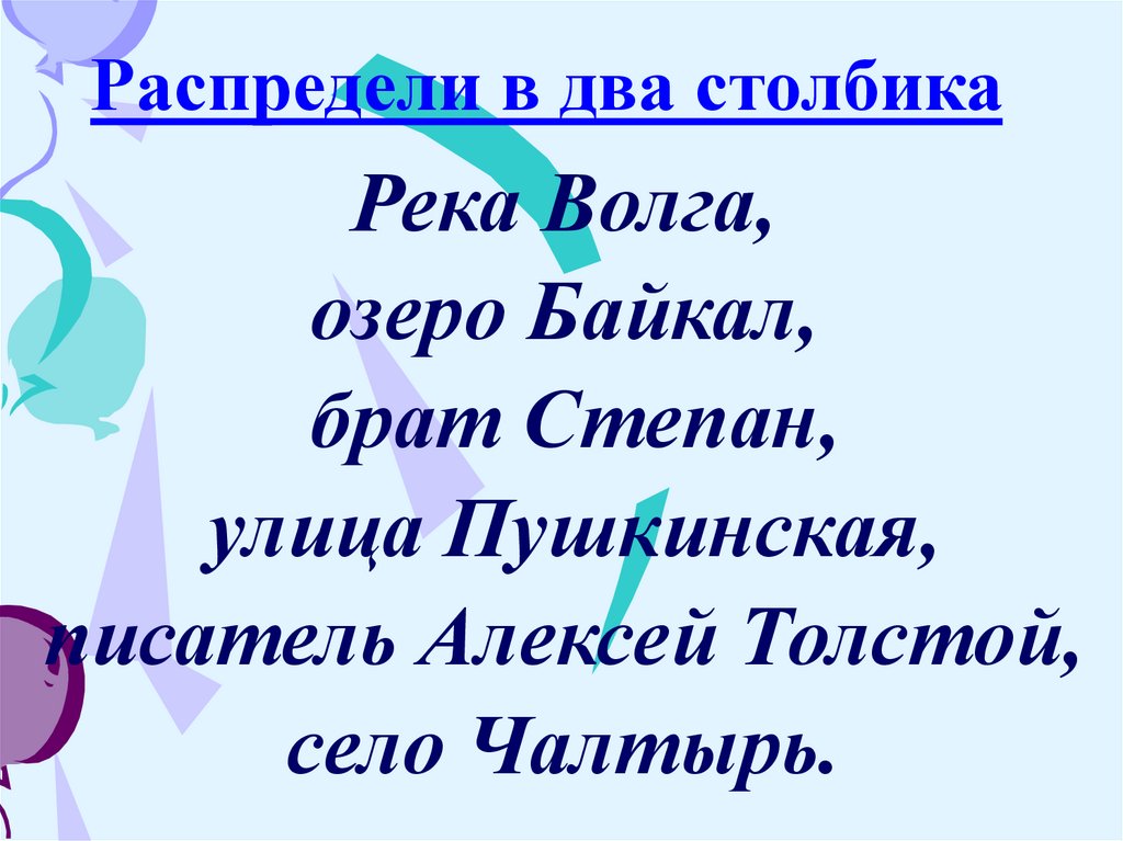 Распредели в два столбикаРека Волга,