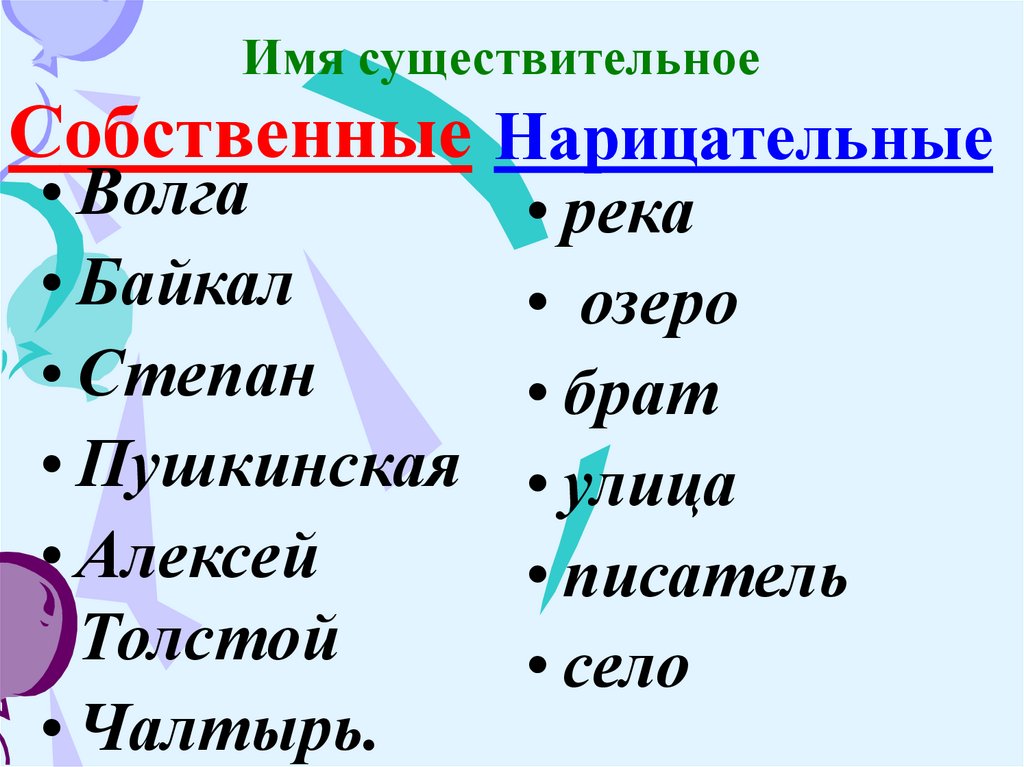 Имя существительноеСобственные Нарицательные