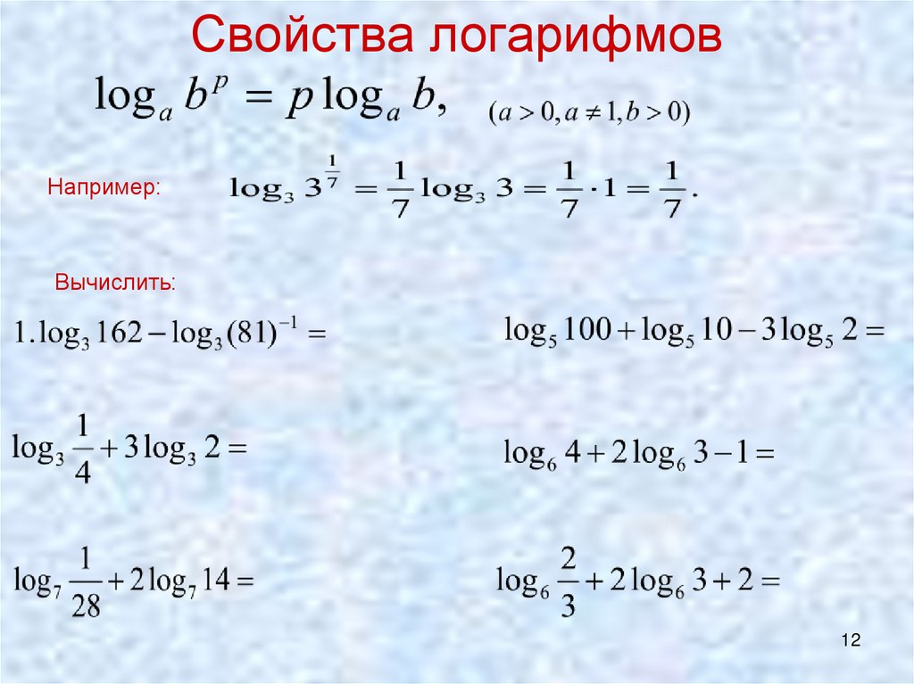 Свойства логарифмовНапример:
