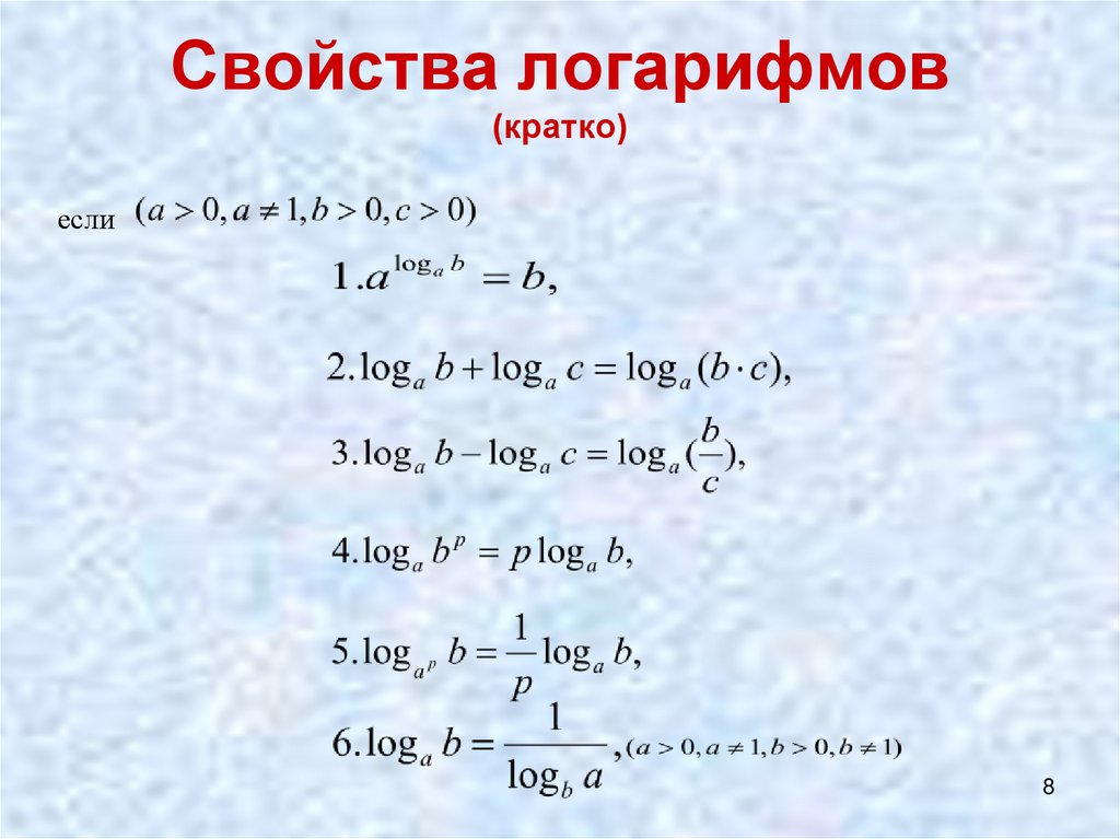 Свойства логарифмов(кратко)