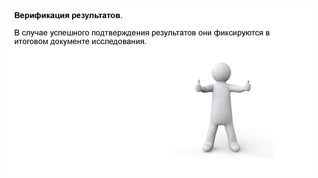 Верификация результатов.В случае успешного подтверждения результатов они фиксируются в