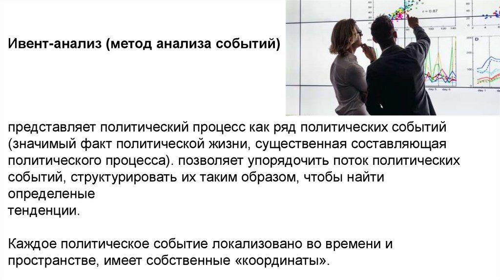Ивент-анализ (метод анализа событий)представляет политический процесс как ряд политических событий