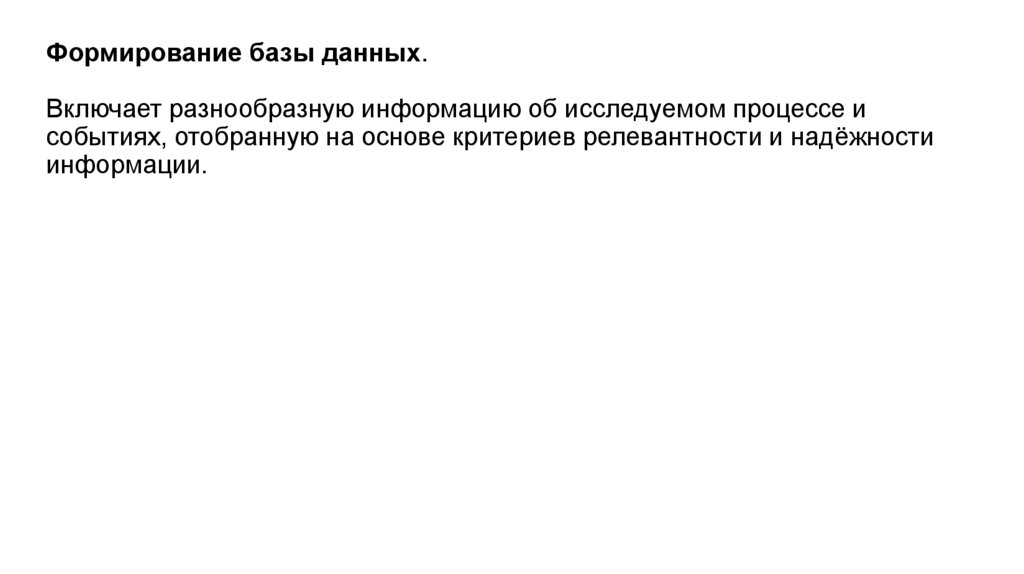Формирование базы данных.Включает разнообразную информацию об исследуемом процессе и