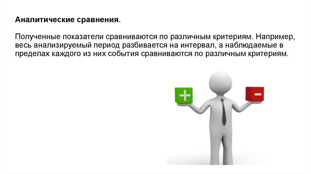 Аналитические сравнения.Полученные показатели сравниваются по различным критериям. Например,