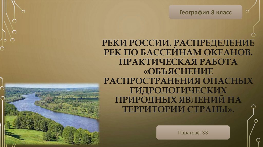 1. Реки России. Распределение рек по бассейнам океанов. Практическая работа «Объяснение распространения опасных гидрологических