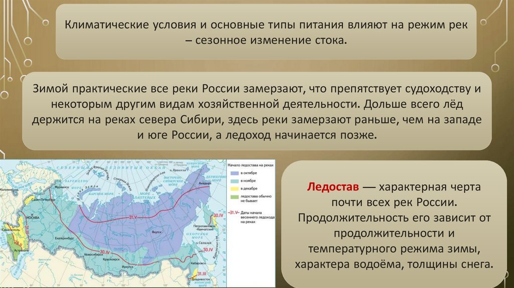 Зимой практические все реки России замерзают, что препятствует судоходству и