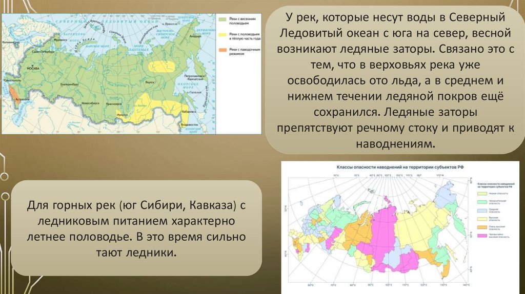 У рек, которые несут воды в СеверныйЛедовитый океан с юга на север, весной