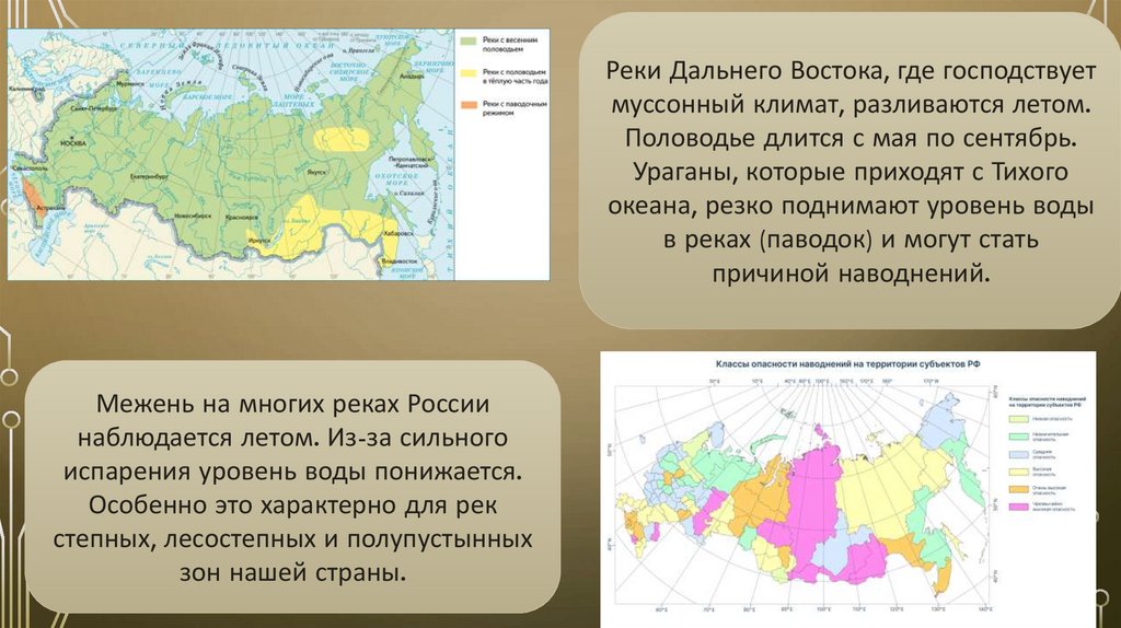 Реки Дальнего Востока, где господствуетмуссонный климат, разливаются летом.