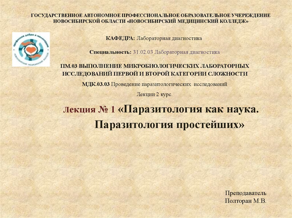 1. Лекция № 1 «Паразитология как наука. Паразитология простейших»
