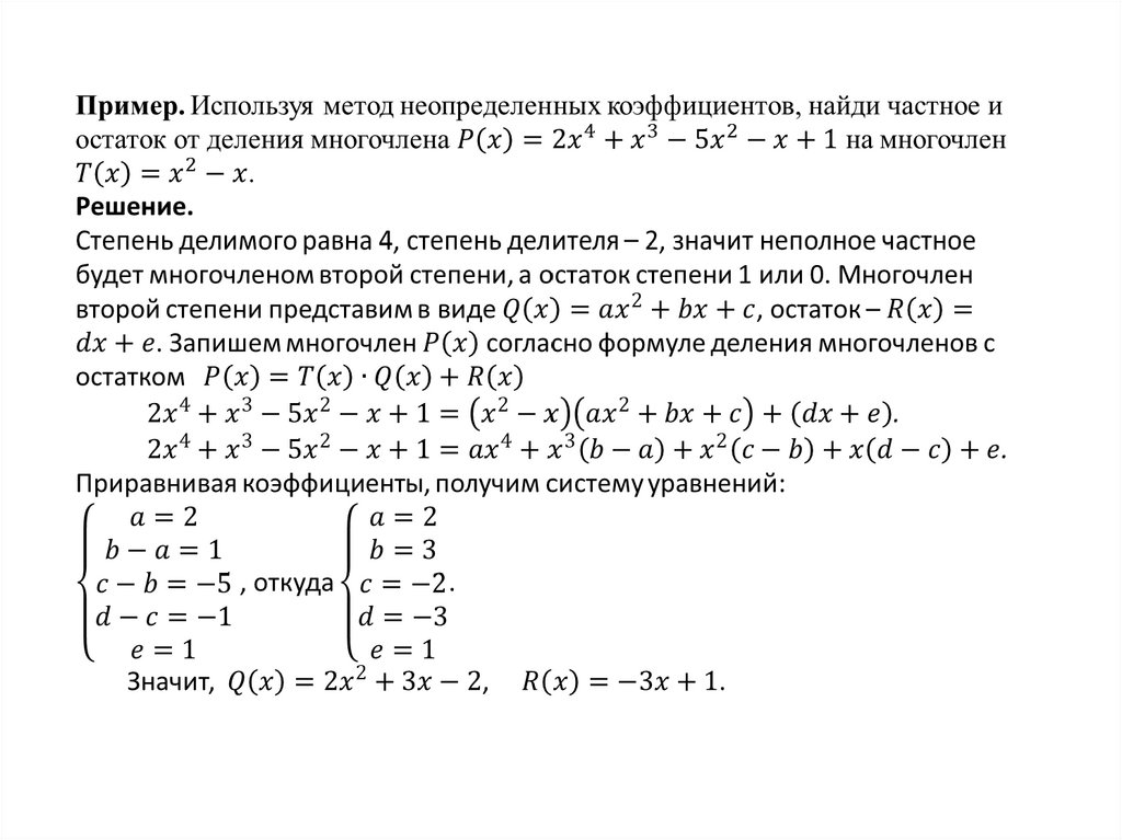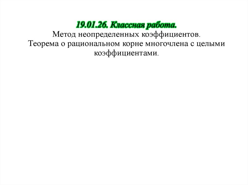 1. 19.01.26. Классная работа. Метод неопределенных коэффициентов. Теорема о рациональном корне многочлена с целыми коэффициентами.