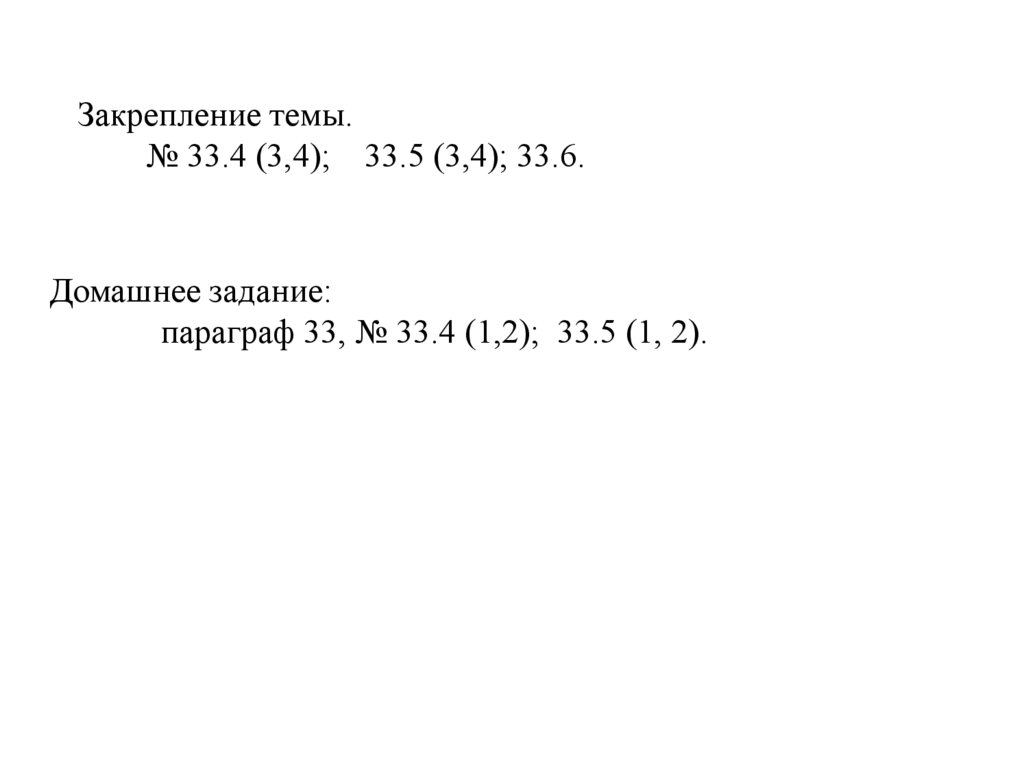 Закрепление темы.№ 33.4 (3,4); 33.5 (3,4); 33.6.