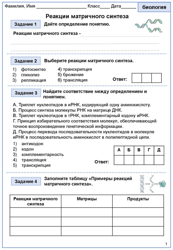 Фамилия, Имя ____________________ Класс____ Дата______биология