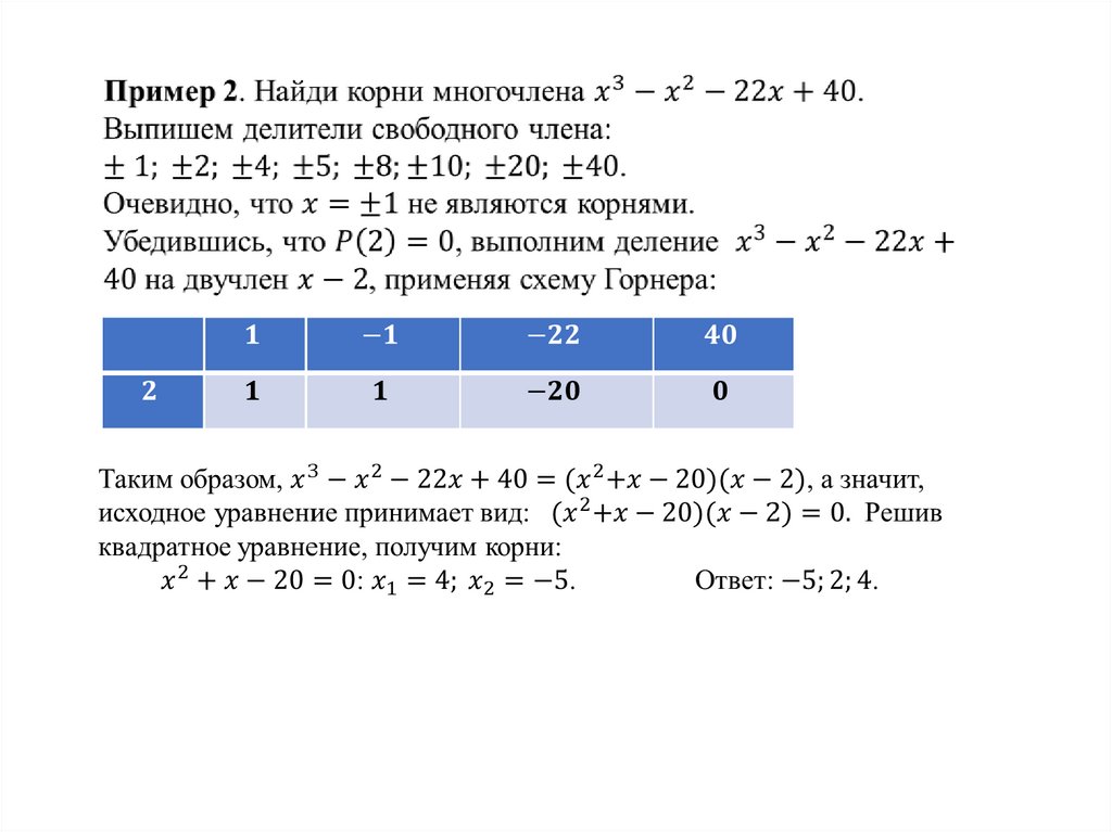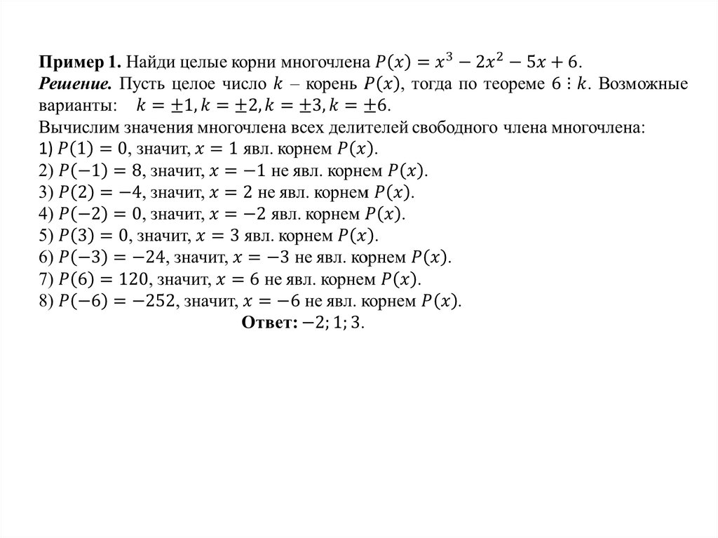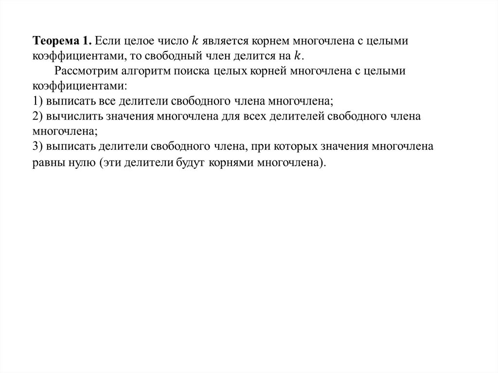 переменной с целыми коэффициентами для нахождения его корней;