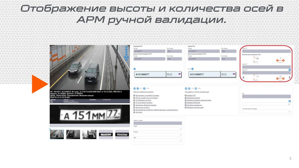 Отображение высоты и количества осей вАРМ ручной валидации.