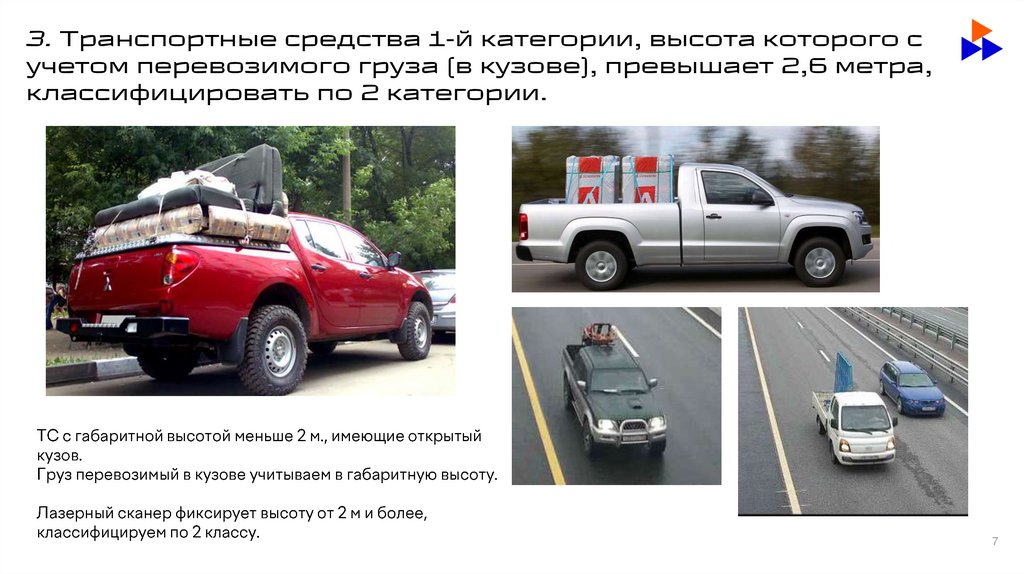 3. Транспортные средства 1-й категории, высота которого сучетом перевозимого груза (в кузове), превышает 2,6 метра,