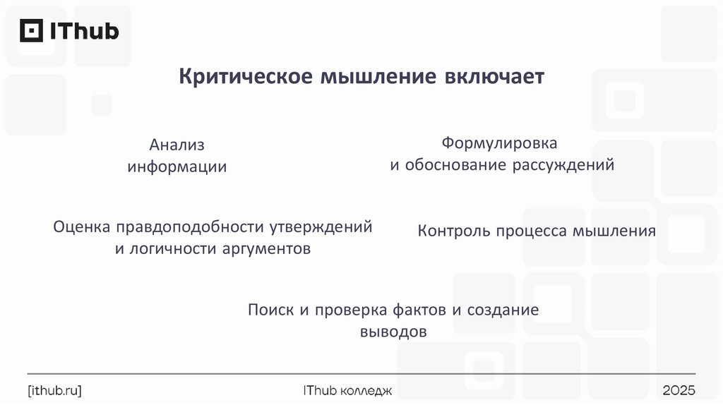 Критическое мышление включаетФормулировка
