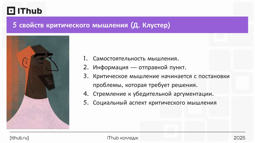 5 свойств критического мышления (Д. Клустер)1. Самостоятельность мышления.