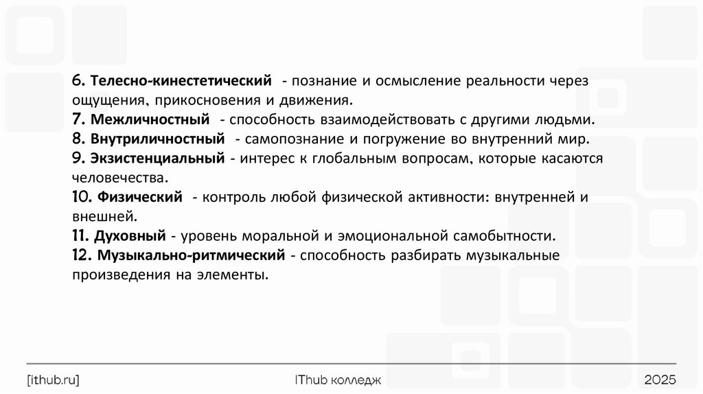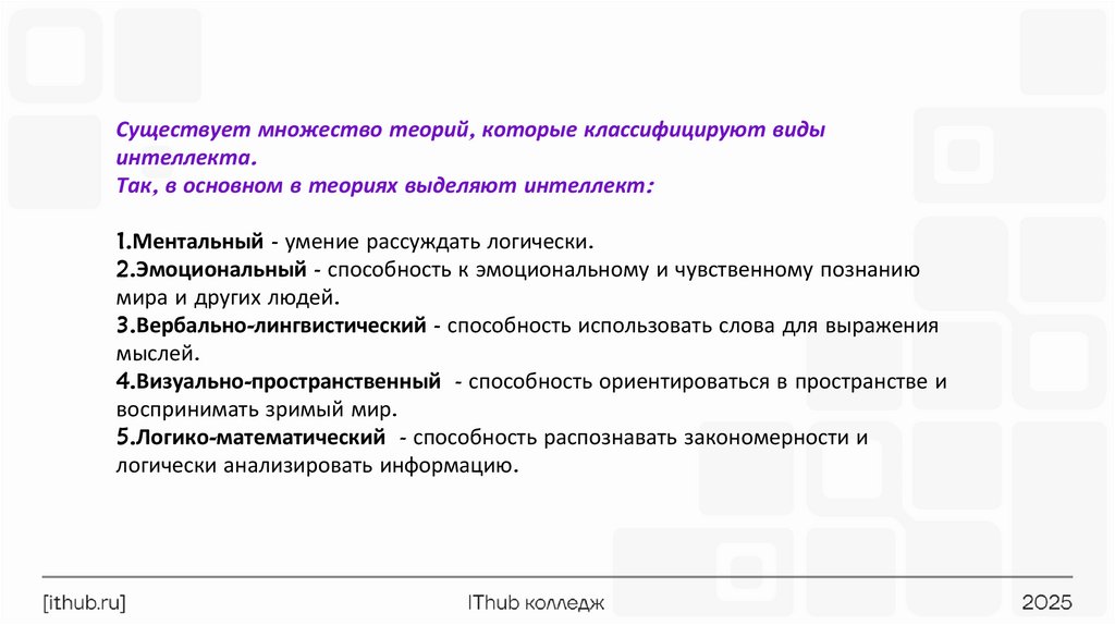Примеры видов интеллекта7.