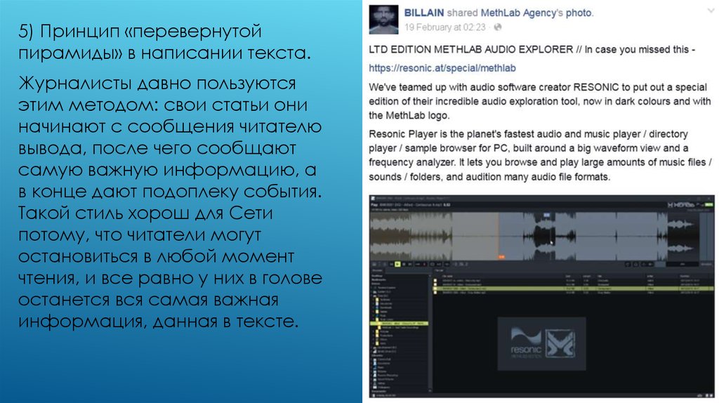 5) Принцип «перевернутойпирамиды» в написании текста.