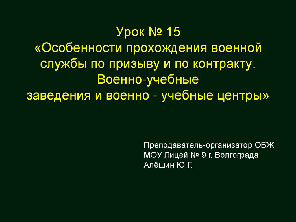 1. Урок № 15 «Особенности прохождения военной службы по призыву и по контракту. Военно-учебные заведения и военно - учебные