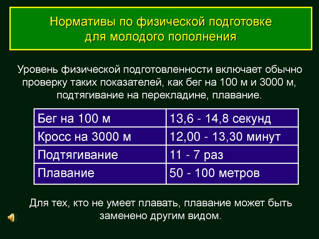 Нормативы по физической подготовкедля молодого пополнения