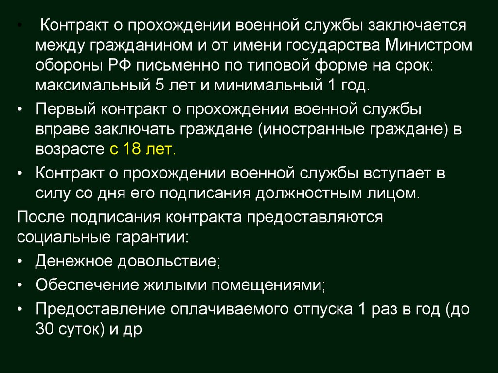 •Контракт о прохождении военной службы заключают с курсантом по