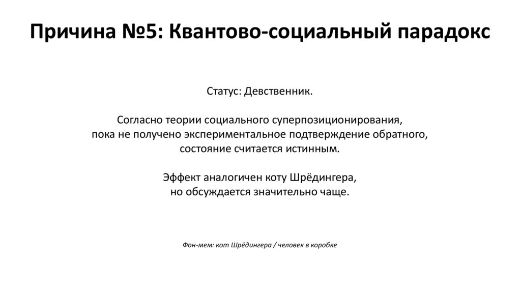 Причина №5: Квантово-социальный парадоксСтатус: Девственник.