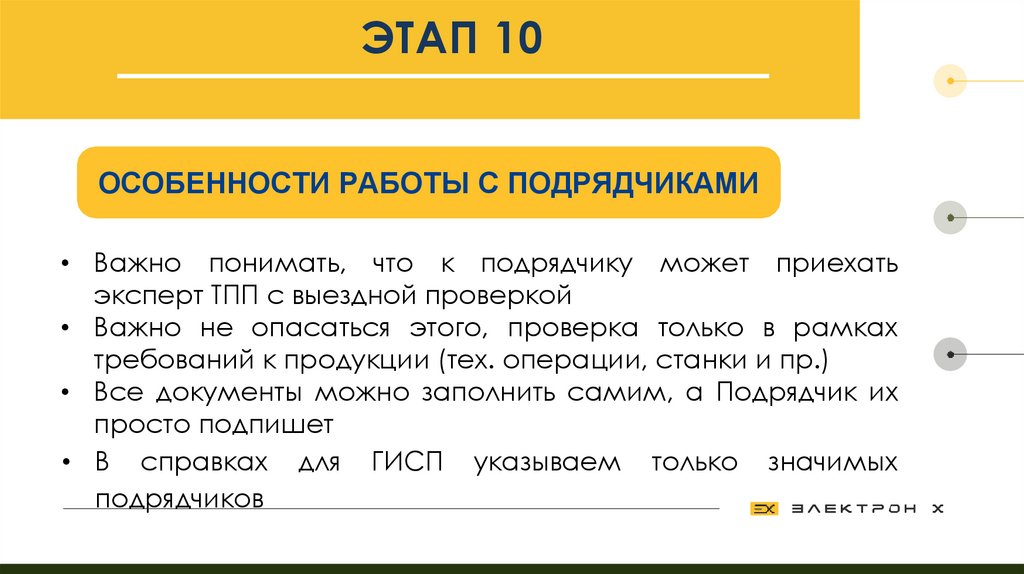 ЭТАП 10ОСОБЕННОСТИ РАБОТЫ С ПОДРЯДЧИКАМИ