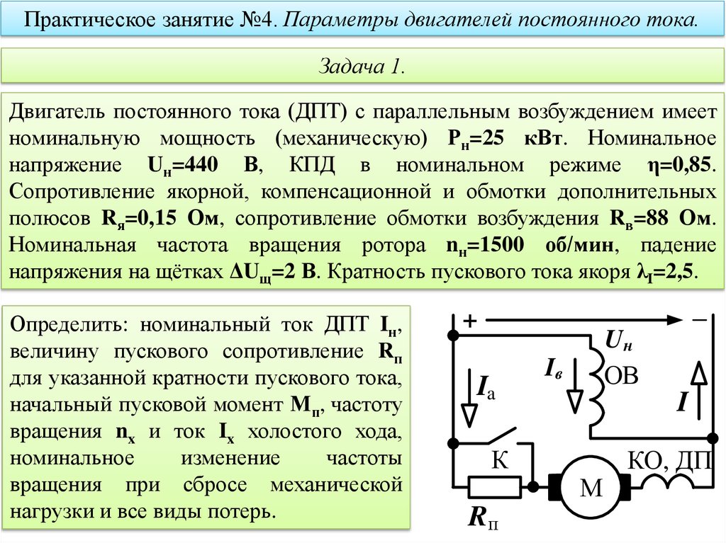 Практическое занятие №4. Параметры двигателей постоянного тока.Задача 1.
