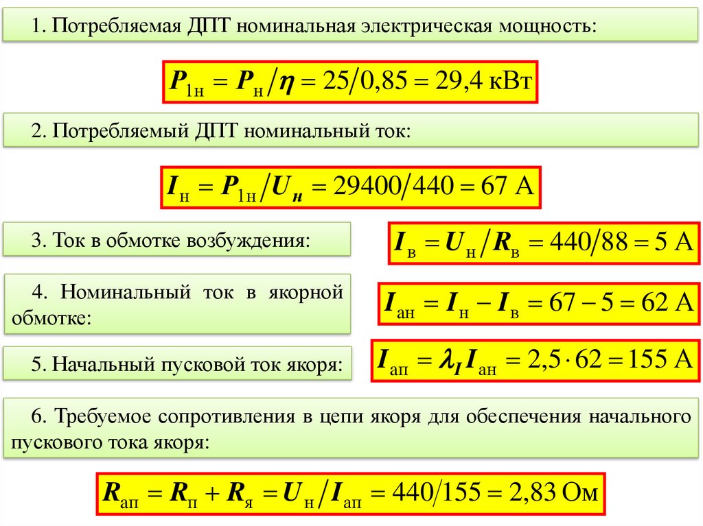 1. Потребляемая ДПТ номинальная электрическая мощность:Р1н Рн 25 0,85 29,4 кВт