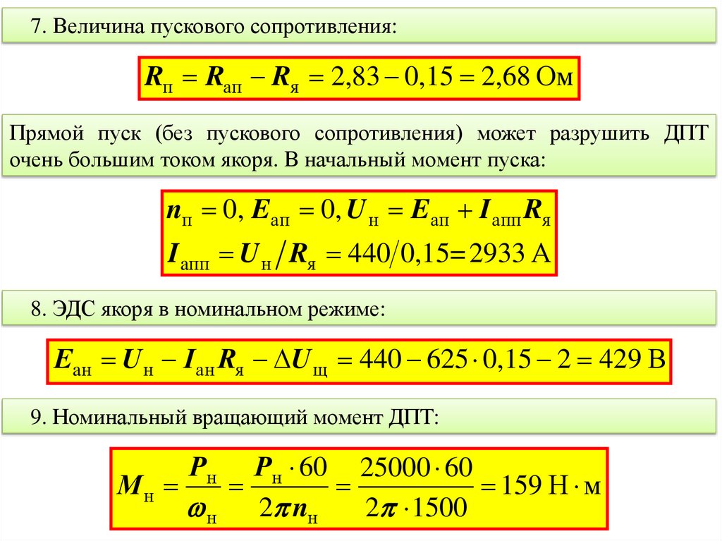7. Величина пускового сопротивления:Rп Raп Rя 2,83 0,15 2,68 Ом