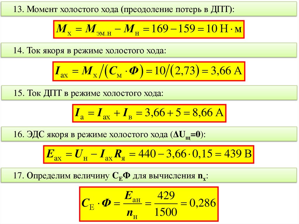 13. Момент холостого хода (преодоление потерь в ДПТ):М х М эм.н М н 169 159 10 Н м