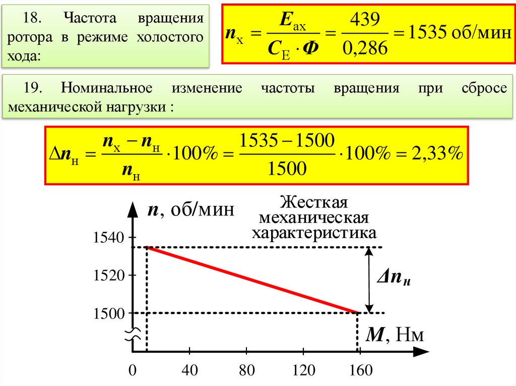 18. Частота вращенияротора в режиме холостого