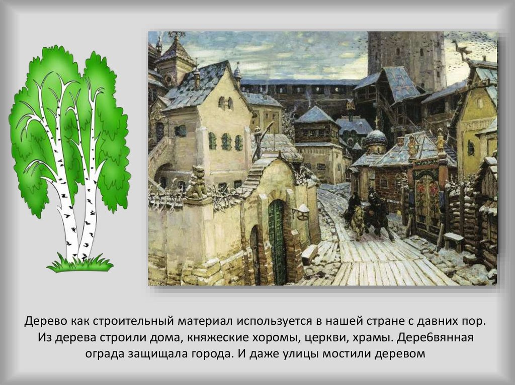 Дерево как строительный материал используется в нашей стране с давних пор.Из дерева строили дома, княжеские хоромы, церкви, храмы. Дере6вянная