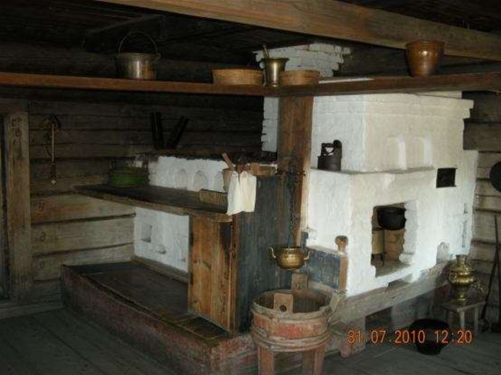приготовления пищи. У печи стояли