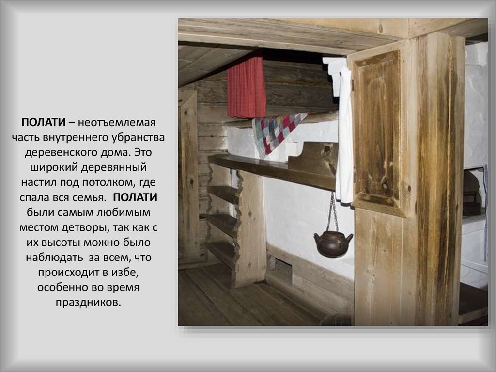 пищу, на печи спали старики, а на полатях
