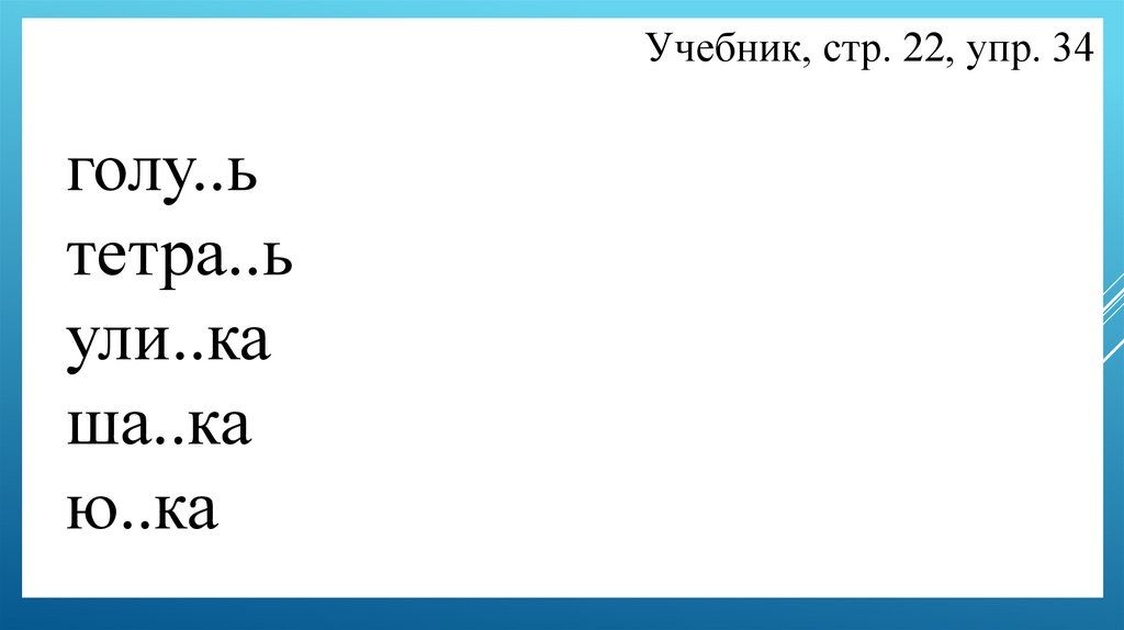 Учебник, стр. 22, упр. 34голу..ь