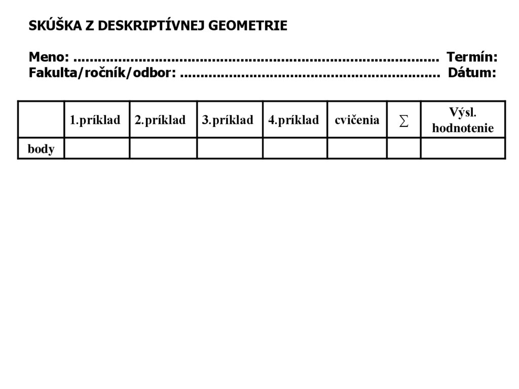 SKÚŠKA Z DESKRIPTÍVNEJ GEOMETRIEMeno: .......................................................................................... Termín: