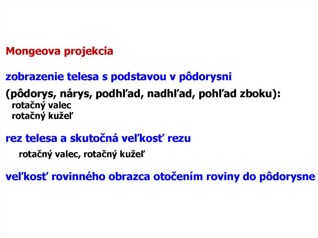 Mongeova projekciazobrazenie telesa s podstavou v pôdorysni
