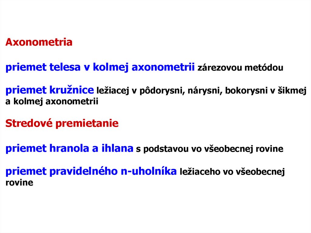 Axonometriapriemet telesa v kolmej axonometrii zárezovou metódou