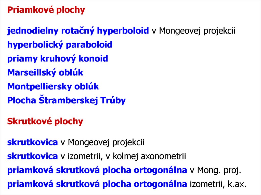 priamková skrutková plocha ortogonálna v Mong. proj.