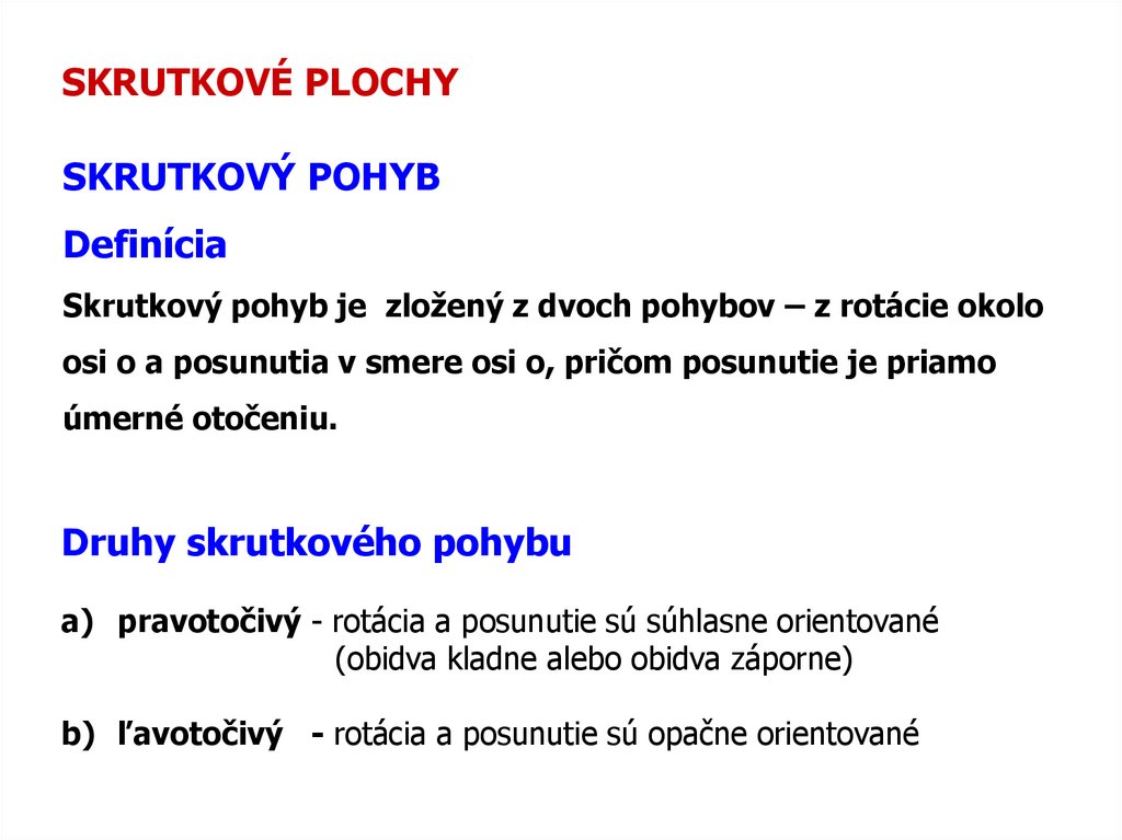 SKRUTKOVÉ PLOCHYSKRUTKOVÝ POHYB